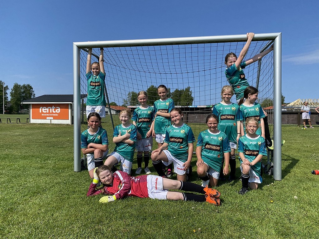 Söndagen den 21/5 spelade vi säsongens andra match, mot Värö United. Vi fick göra en massa mål (någon sa 21 st, i protokollet står det 15 st) men framförallt kämpade vi tillsammans som ett lag, och försökte hitta varandra med fina passningar. Varmt och svettigt, men bara glada miner! Heja heja!
