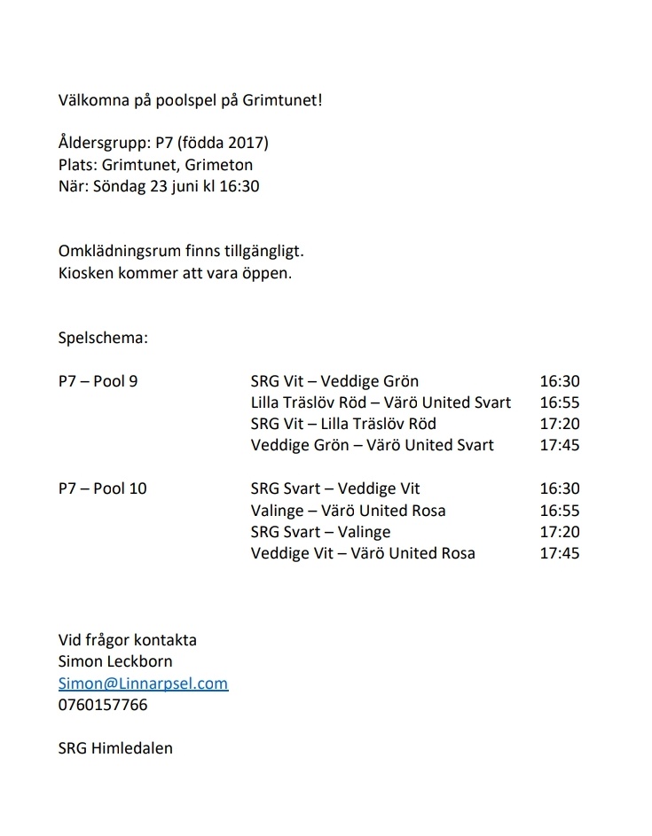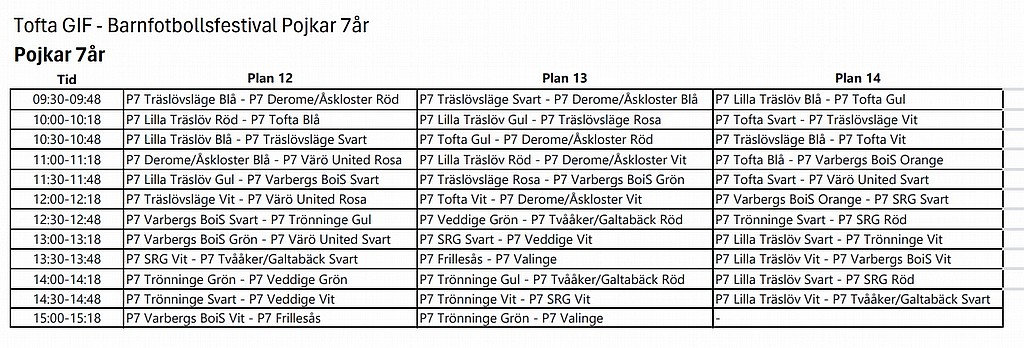 Spelschemat för alla 7 åringarnas matcher syns i bilden här ovan.